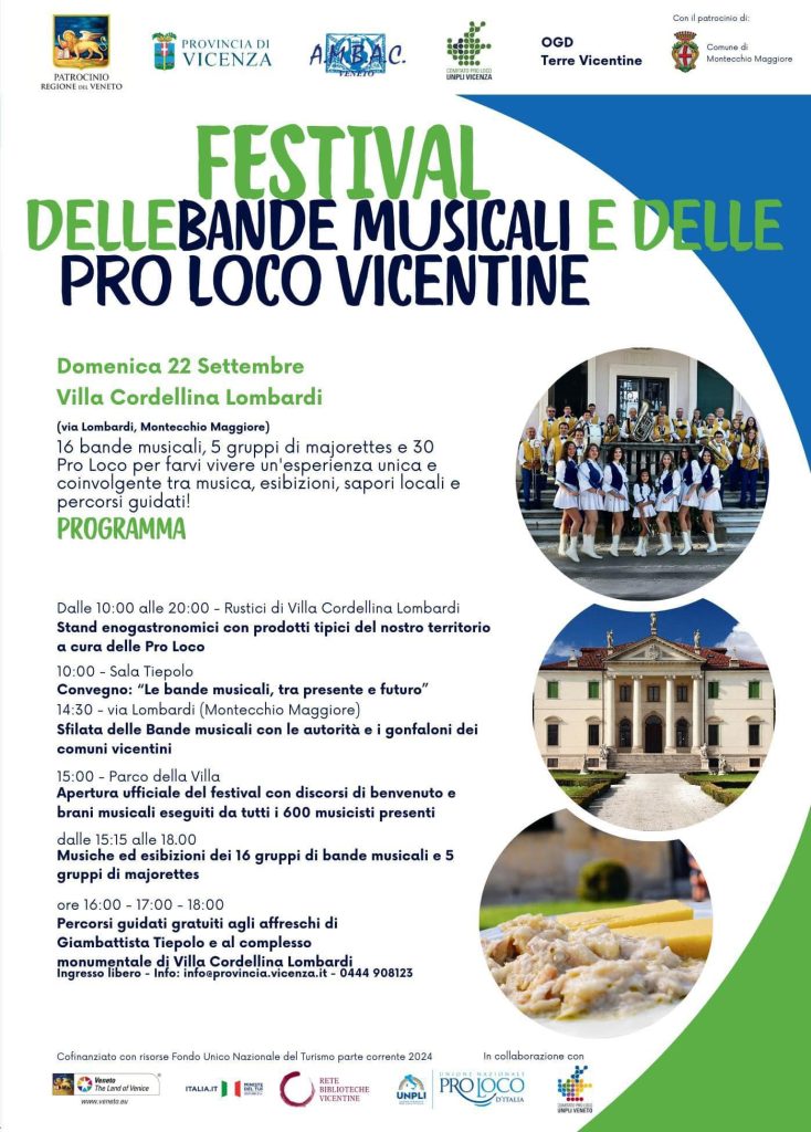 Domenica 22 settembre è stata una bellissima giornata per la nostra Pro Malo, vissuta nella splendida cornice di Villa Cordellina a Montecchio Maggiore con il Festival delle Bande Musicali e delle Pro Loco, organizzato dalla Provincia di Vicenza.